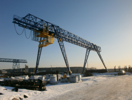 Краны козловые с грузовой тележкой, с электроталью (г/п 3,2-32 тонны, возможна поставка кранов г/п до 200 тонн; длина пролета 16,0-42,0 метра и более) |